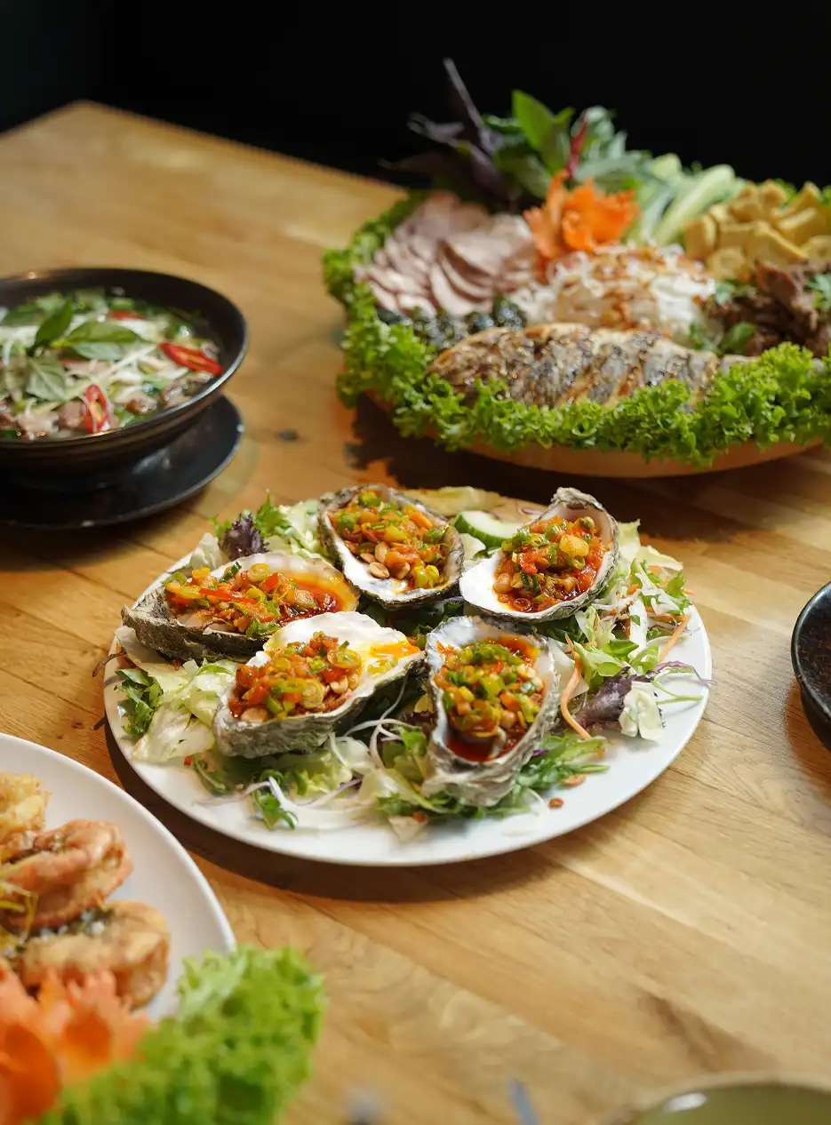 Tauchen Sie ein in ein faszinierendes Zusammenspiel aus Farben, Düften und Texturen. Unsere Küche ist eine Hommage an die kulinarische Vielfalt Vietnams: Wir vereinen gegensätzliche Aromen, facettenreiche Gewürze und blumige Akzente zu einem harmonischen Ganzen.