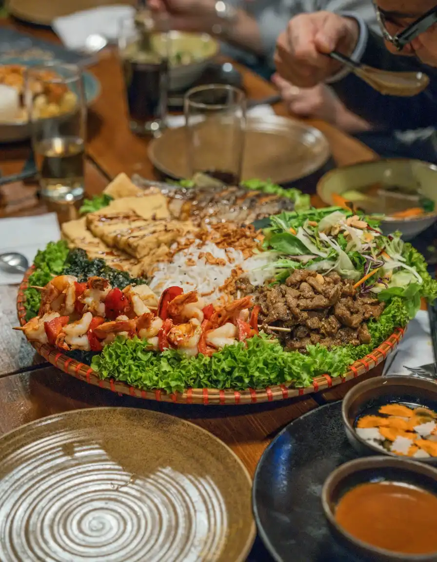 Reservieren Sie Ihren Tisch und genießen Sie vietnamesische Gastfreundschaft in einer Atmosphäre voller Ruhe, Wärme und natürlicher Eleganz.